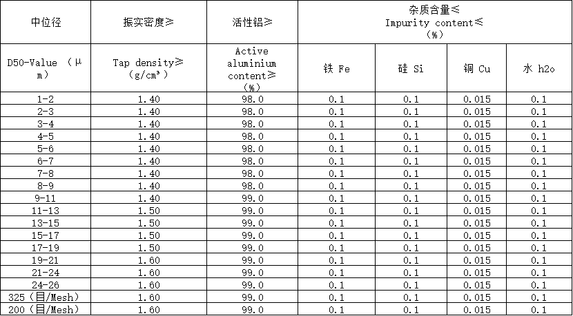 1.粒度均勻、分布區(qū)間窄、振實(shí)密度高。2.球形度高、雜質(zhì)少、活性鋁98%以上。